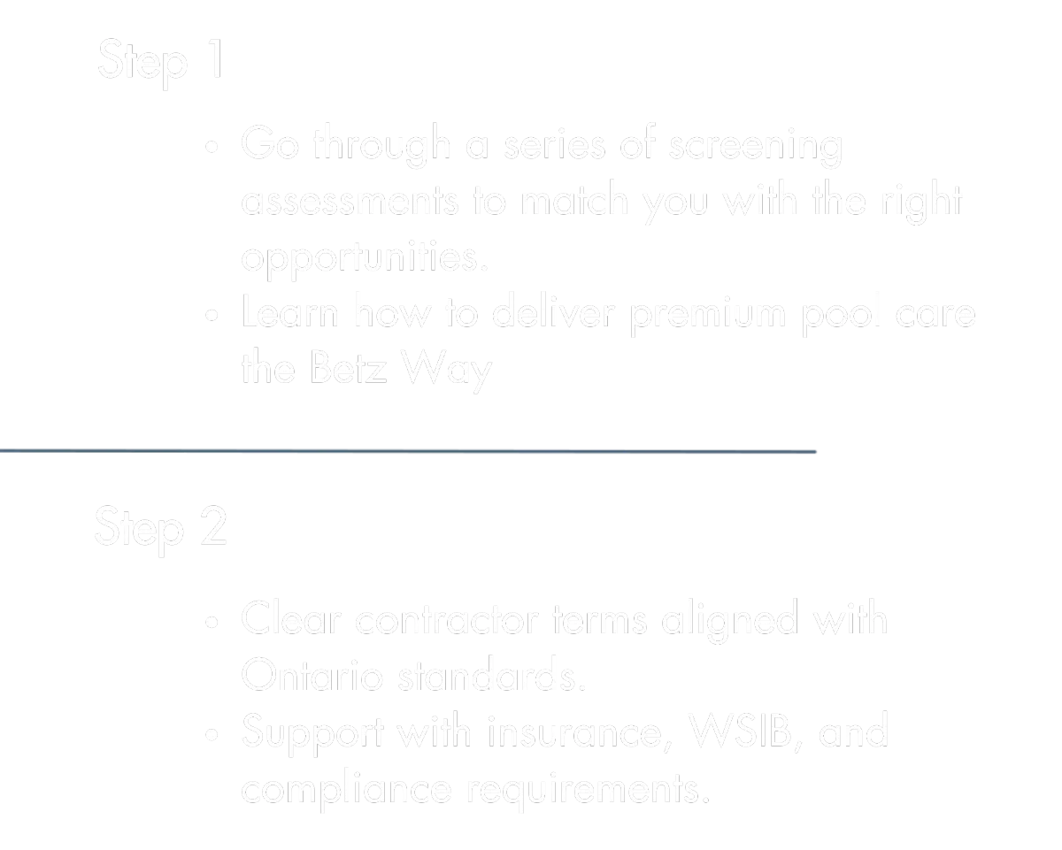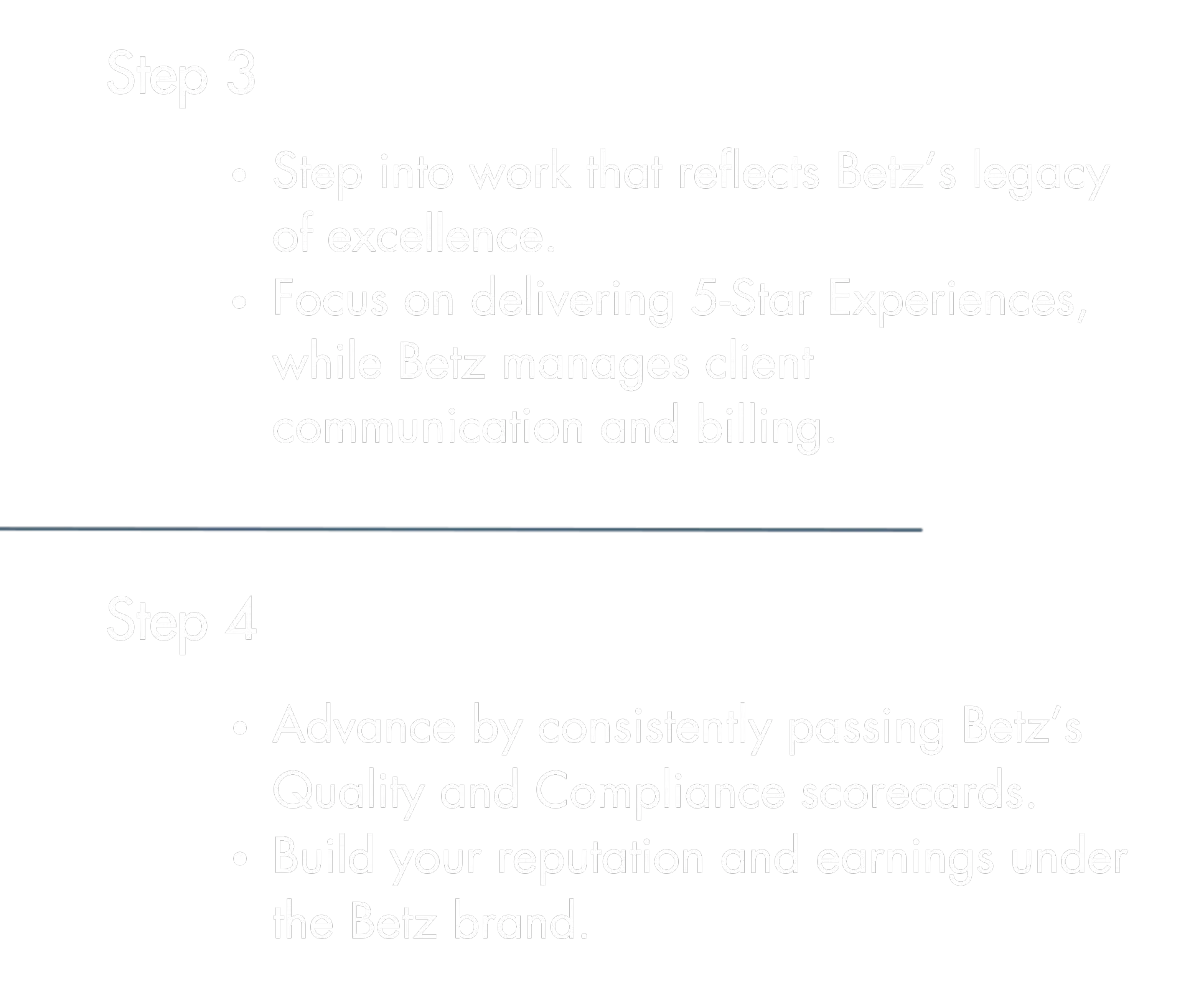By delivering consistent 5-Star service, you’ll earn customer trust and qualify for more routes. Betz’s 80-year reputation brings you a steady flow of premium clients, while our training, branded products, and ongoing support help you maintain quality. High- performing contractors are prioritized for additional pools, service lines, and growth opportunities.